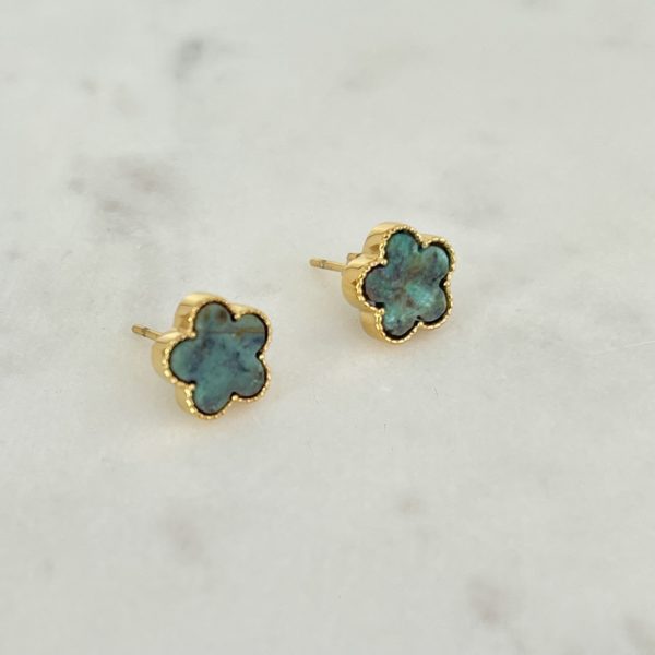 Boucles d’oreille Flora fleur en Turquoise africaine et acier doré inoxydable