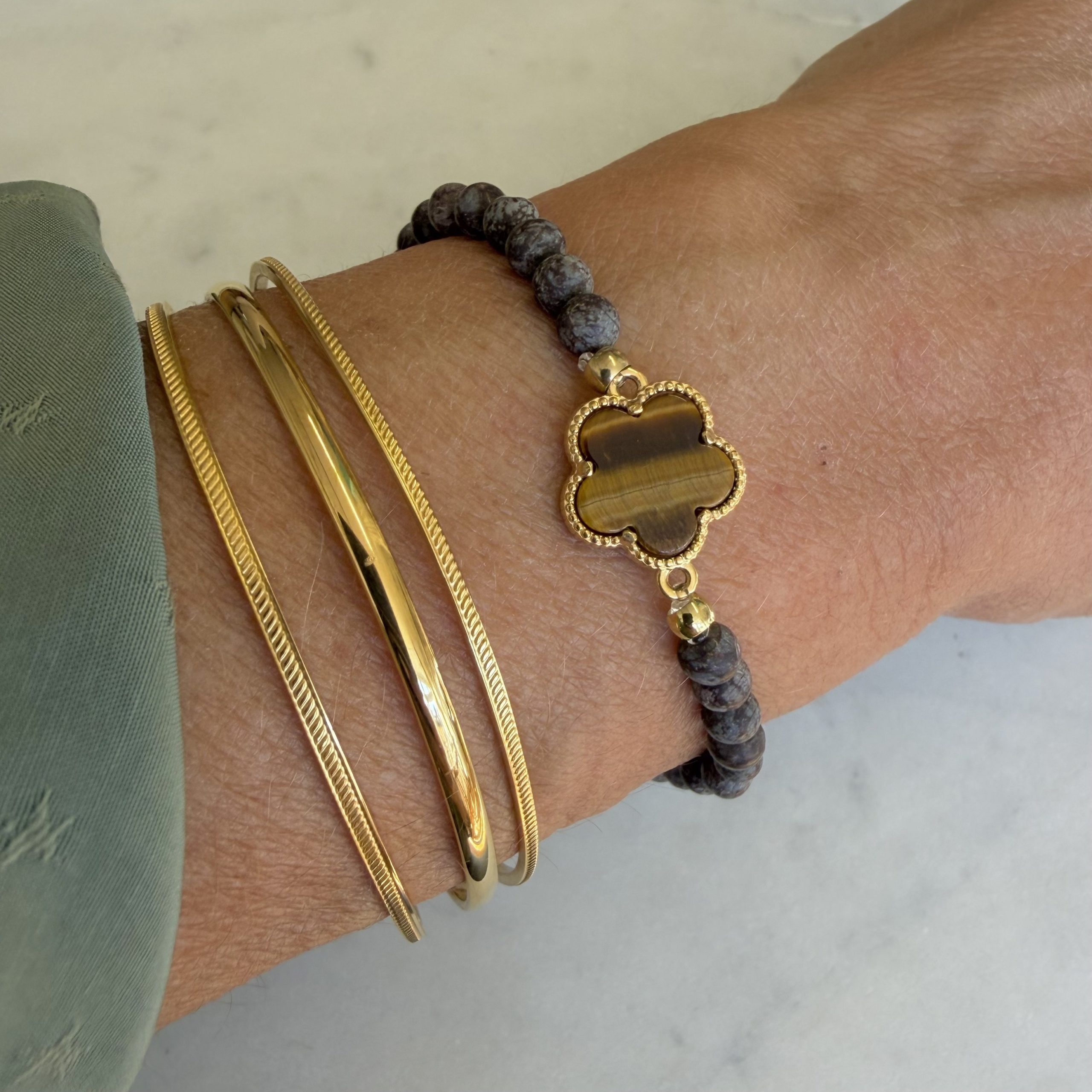 Bracelet « Bodie » en Bronzite et son pendentif en œil de tigre et acier inoxydable